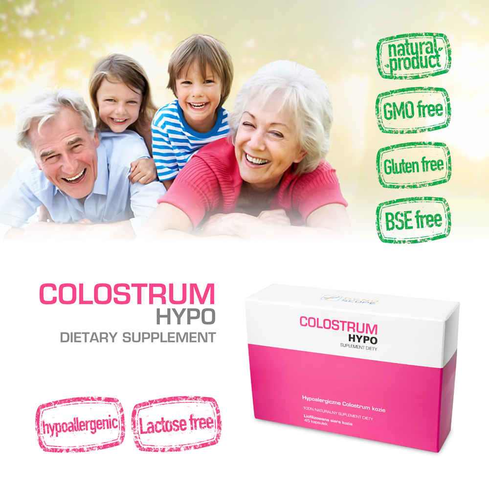 Colostrum Hypo is a next-generation natural dietary supplement based on 100% pure caprine colostrum, collected within the first hours after birth and cold-lyophilized to preserve bioactivity. Due to its close compatibility with human milk, it is safe for individuals allergic to cow’s milk protein. It supports immunity, regeneration, and overall vitality, and contains no additives or preservatives.