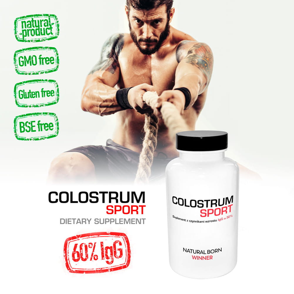 Colostrum Sport is an advanced dietary supplement for physically active individuals, containing lyophilized bovine colostrum collected within the first hours after birth. The capsules are enteric-coated, dissolving only in the small intestine to ensure maximum bioavailability. The product supports regeneration, muscle growth, immunity, and overall performance.